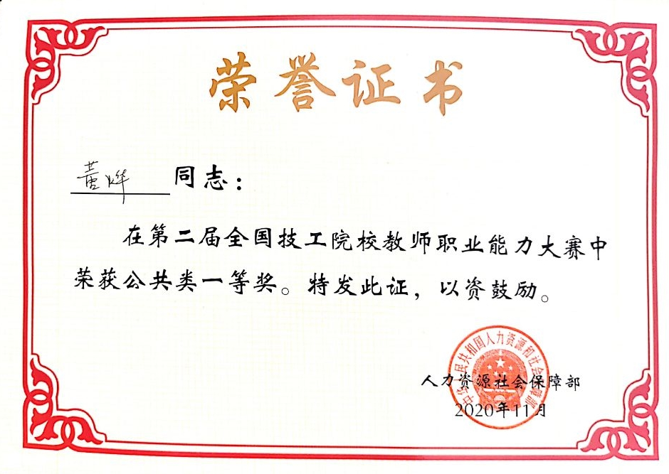 • 技工院校教師職業能力大賽公共類 國家級一等獎